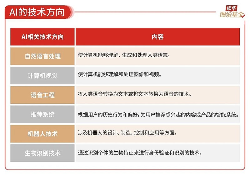 11、AI研究的第三层是技术方向。将机器学习的各类模型应用到各个现实领域,就产生了不同的技术,主要包括自然语言处理、计算机视觉、语音工程、推荐系统、机器人技术、生物识别技术等,为各个行业带来了深刻的变革和创新。