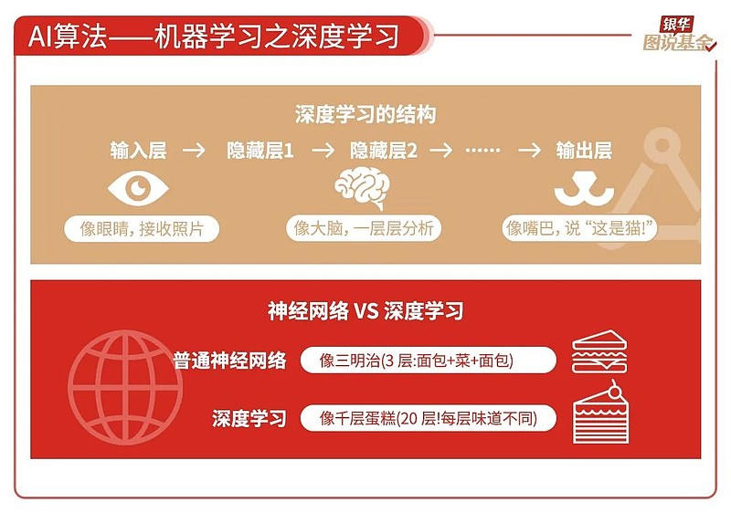 6、AI研究领域的第二层是算法。机器学习(ML)是算法的一种重要方式,专注于通过数据学习来实现智能。神经网络(NN)是机器学习中的一种方法,模仿人脑的神经元结构来处理数据。深度学习(DL)是神经网络的一个子集,通过多层结构来学习数据中的复杂模式,广泛应用于图像识别、自然语言处理等领域。