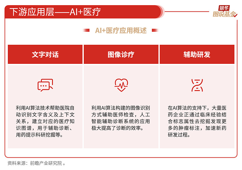 22、下游应用层是人工智能技术在各不同场景下的商业化应用,包括医疗、金融、零售、工业等行业类应用,以及智能驾驶、智能穿戴、智能机器人等终端应用。