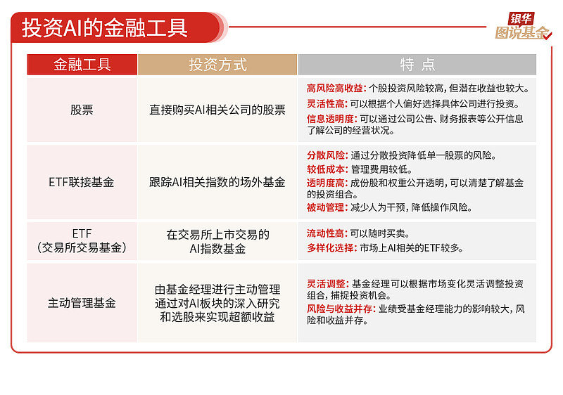 43、投资者想要对AI题材进行投资,通常可以考虑关注人工智能主题的优质股票或基金(ETF、ETF联接、主动管理型)。