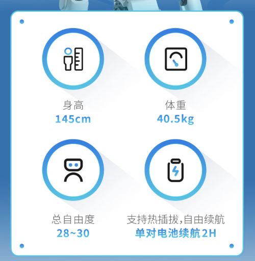 具体到实际参数方面,青心意创Orca I 标准版人形机器人身高为145厘米,体重40.5公斤,总自由度则达28-30,同时支持热插拔,单对电池续航时间可达2小时。在总体参数的基础上,该款机器人的设计也十分拟人化,高亲和力的外观赋予机器人极强的可交互性,能满足多元化用户群体的使用、科研、二次开发需求。