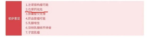 爱康在张女士的2023年体检报告中,提示“右肾钙化灶,左肾错构瘤可能”。张女士在投诉中对外公布的2024年的囊肿大小在3.5cm×2.8cm,从2023到2024年,该囊肿大小在癌症的增长速度范围内。