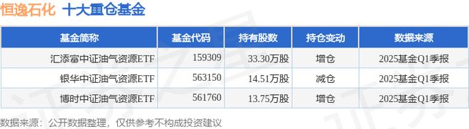 持有恒逸石化最多的基金为汇添富中证油气资源ETF,目前规模为0.63亿元,最新净值0.9112(4月24日),较上一交易日下跌0.16%。该基金现任基金经理为晏阳。