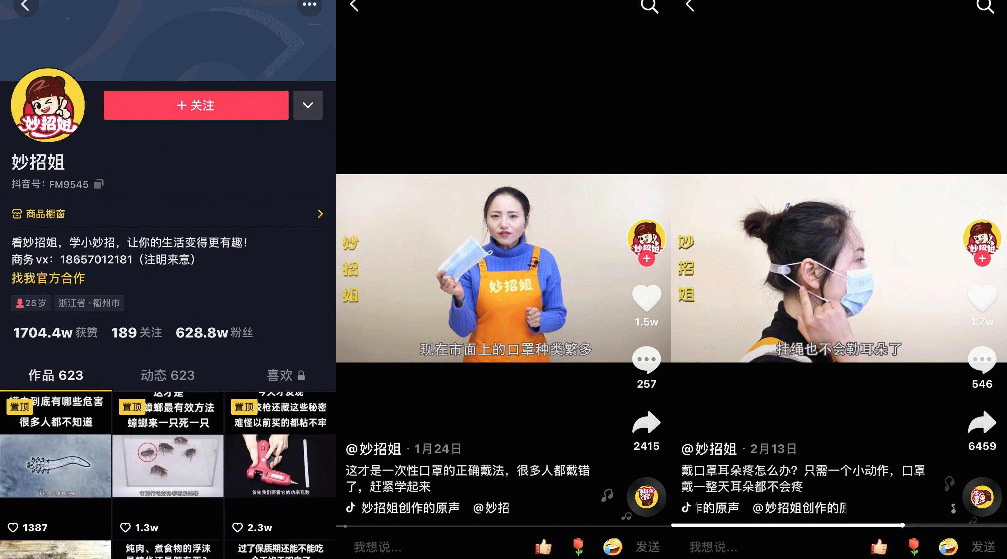 “如何正确佩戴口罩,消毒液的正确用法,戴口罩耳朵疼怎么办?”今年疫情期间,抖音“妙招姐”为粉丝们量身定做了不少抗疫小妙招,一个个短视频获得网友点赞。