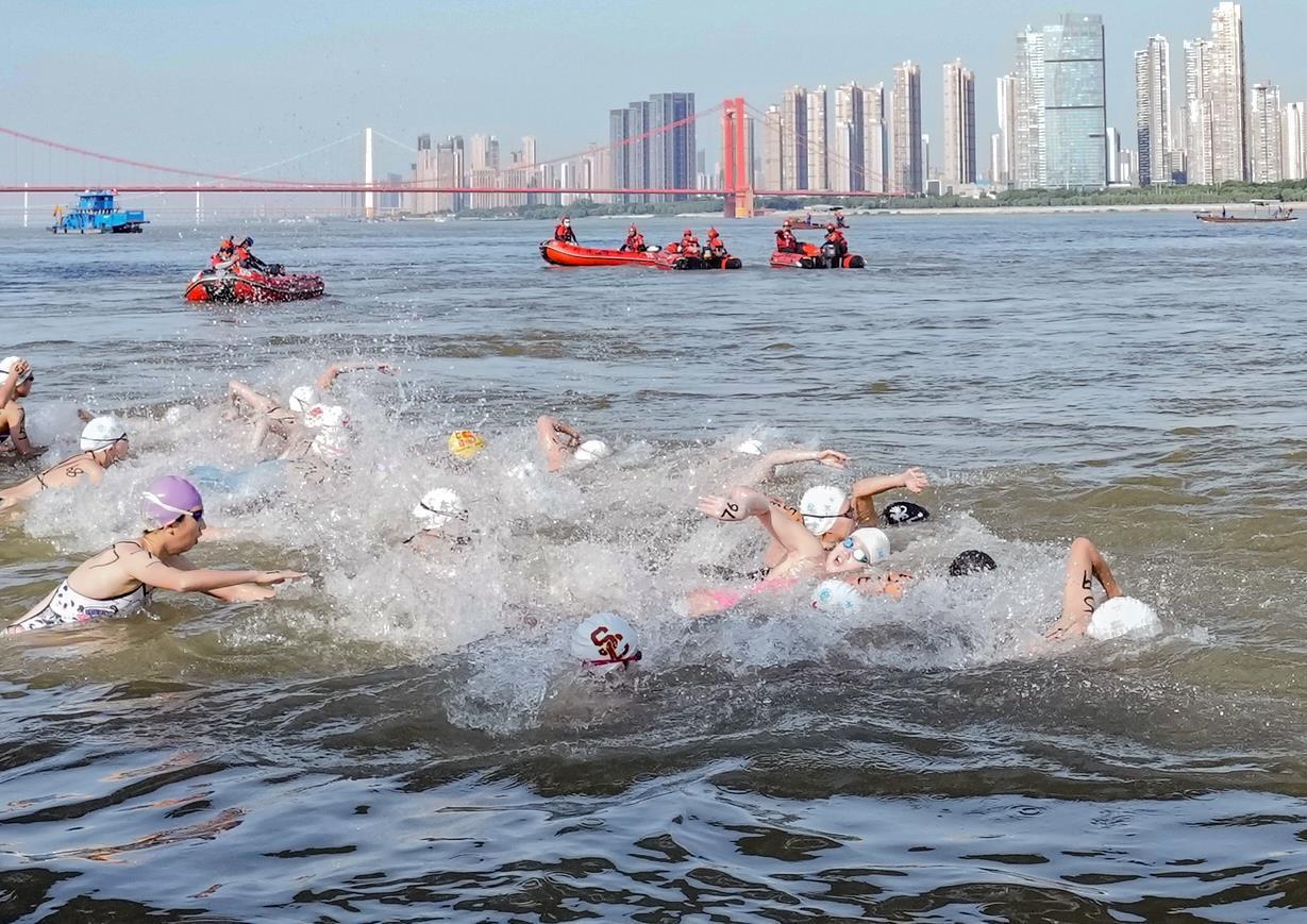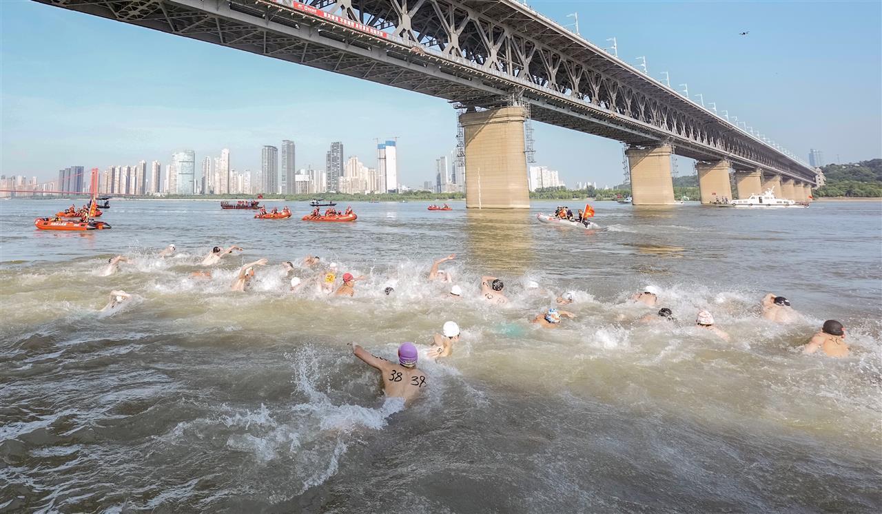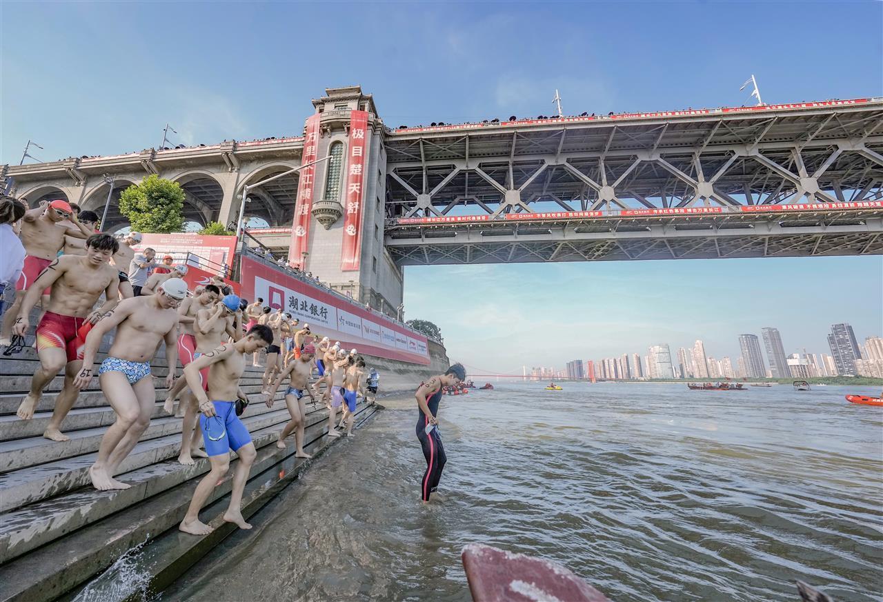 从专业选手到普通市民,一个个矫健的身影跃入长江,激起片片水花。江风总会托起一张张跃动的面孔,浪花会在泳衣上绣出一枚枚勋章。这条江,将继续见证一代又一代武汉人的成长,这个节,也将继续带给一代又一代武汉人快乐和回忆。