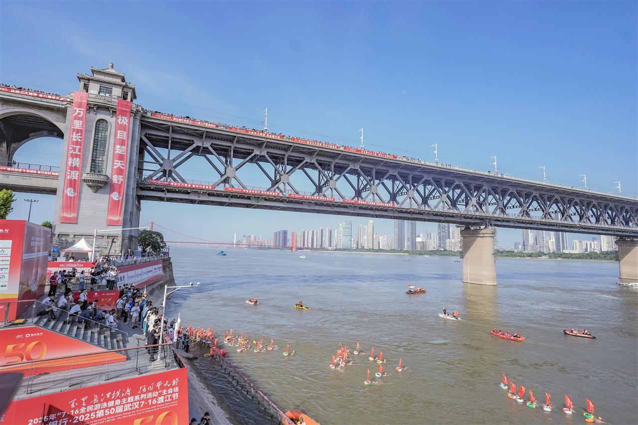 7月16日上午,2025年“716全民游泳健身主题系列活动”主会场湖北银行2025第50届武汉716渡江节盛大举办。本届渡江节的主题依然为“万里长江横渡,极目楚天舒”,早上7时许,武昌汉阳门码头入水点附近、长江大桥上,就围满了专程赶来观赛的市民。