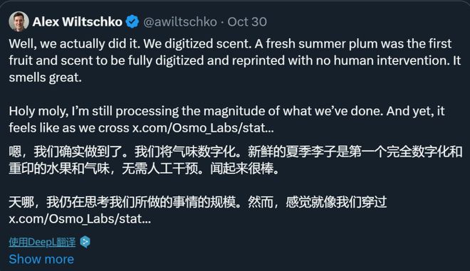 威尔奇一直致力于气味研究,他认为这种常被忽视的感官具有强大的情绪影响力,而人类对其认知仍存在巨大空白。在成功复现李子香气后,威尔奇携此成果在多地进行技术演示,展示了气味数字化的现实可行性。