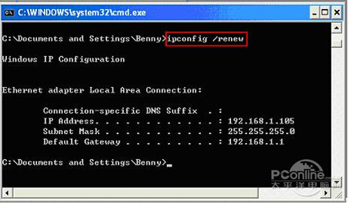 如果您的电脑在一个局域网内,并且网卡IP地址是通过局域网的服务器自动分配的,可以单击“开始”按钮,选择“附件”中的“命令提示符”,在命令行状态下输入“IPconfig /renew”,让系统释放当前的IP地址,重新获得一个新的地址。若您的IP地址是设置为固定IP地址的,如果是您自己设置的,可以另外设置一个,如果是由管理员分配的,那么您需要联系管理员,报告IP地址冲突的问题,要求更换IP地址或找出产生冲突的电脑进行修正。