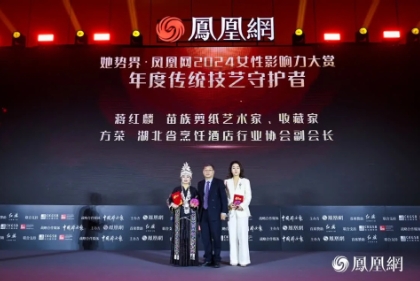 上海交通⼤学校务委员会委员 、特聘教授 ,中国公益发展研究院院⻓徐家良为今年新设的“她势界·年度传统技艺守护者”颁奖。该奖项旨在表彰那些在时间中不断精进、打磨手艺的行业女性。两位获奖者苗族剪纸艺术家、收藏家蒋红麟,湖北省烹饪酒店行业协会副会长方荣以指尖和舌尖为舞台,心手相生,开创了属于自己的广阔天地。