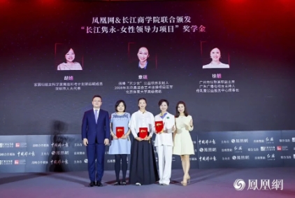 颁奖礼尾声,凤凰网与长江商学院联合颁发“长江隽永-女性领导力项目”奖学金。长江隽永是长江商学院建校20年之际推出的女性赋能课程,致力于通过具有国际视野的复合型课程,帮助优秀女性开拓视野、提升领导力,开拓人生的可能性。活动现场,长江商学院教授、MBA项目负责人李洋,凤凰网执行董事、高级副总裁,凤凰卫视集团营销管委会副主任池小燕为强棒“艺少女”公益项目发起人、2008年北京奥运会艺术体操项目亚军、北京体育大学高级教练章硕,家园归航女科学家南极科考计划第四期成员、深圳市人大代表胡婧,广州市妇联兼职副主席、广东广播电视台主持人、母乳爱公益服务中心理事长徐靓颁奖,授予三位免费入学资格。
