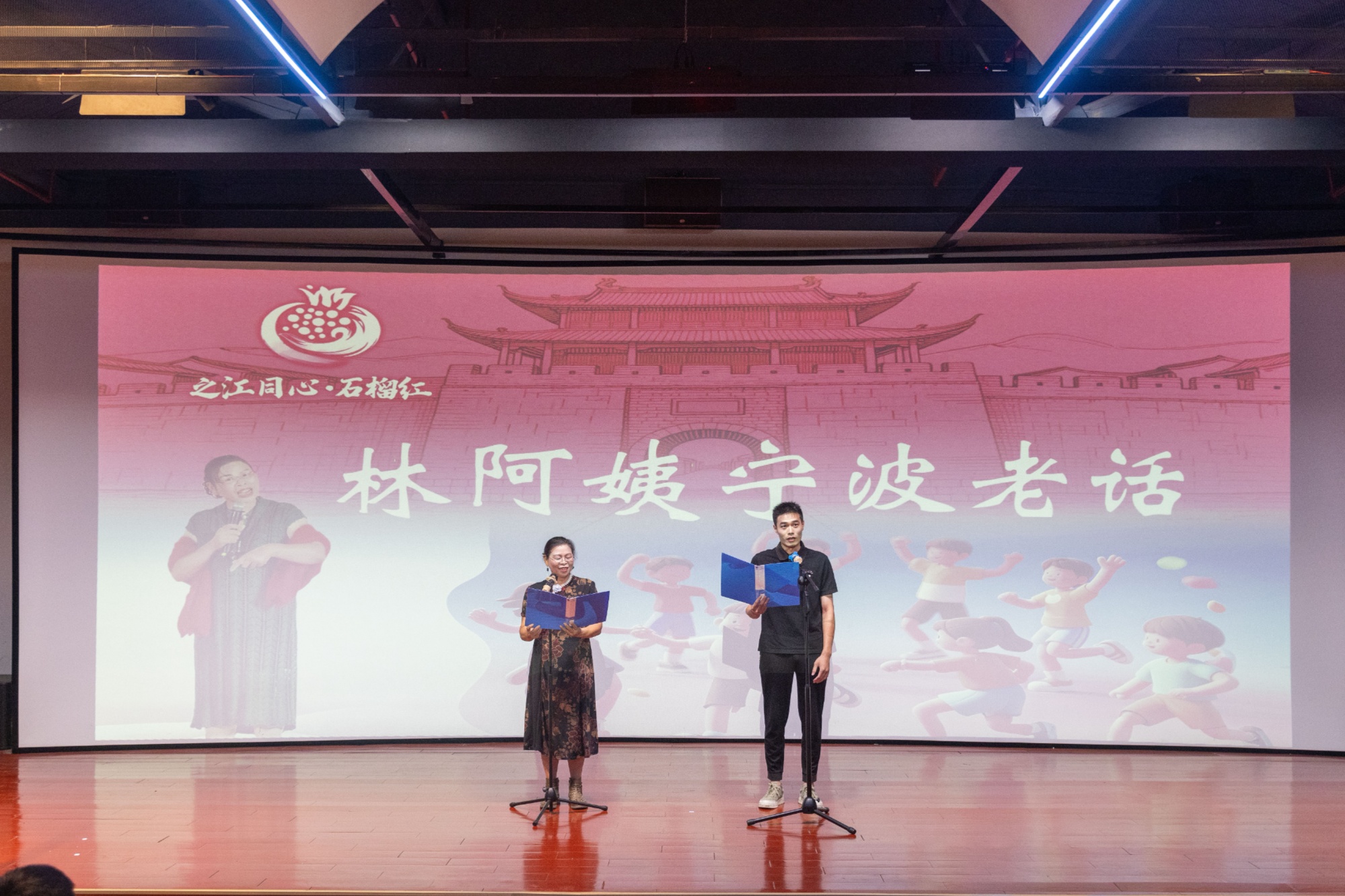 江北区音乐家协会副主席冯冰峰以“董黯汲水奉母”“罗贯中负薪读书”等慈城历史典故为引,深入浅出地阐释了慈孝文化的时代价值。互动环节中,林阿姨用诙谐生动的宁波老话与孩子们交流,在吴侬软语间传递方言韵味,唤起在场观众对乡土文化的认同感。