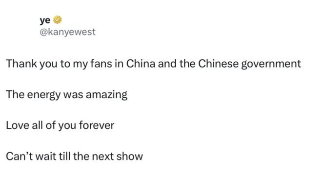 直到次日侃爷的小红书账号发布详细中文声明,一一对网络上的质疑展开有力回击,舆论风向才发生逆转。此外,侃爷也发推直接表达了对中国的喜爱,并表示很期待下一场演出。道理牌和情感牌齐下,现在评论一边倒地支持侃爷,普遍认为问题出在上海星珀文化专业能力的欠缺上。(回顾:)