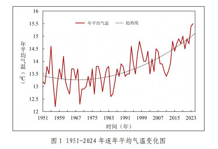 世界气象组织已宣布,2024年是有数据记录以来最热的一年,打破了2023年的纪录。2024年也是我国自1961年有记录以来最热的年份。在此气候背景下,济南市年平均气温达15.5℃,较常年异常偏高1.4℃,再次打破了2023年创造的年平均气温最高历史纪录(15.4℃)。其中,2024年4月、8月、11月全市平均气温分别为17.9℃、28.1℃、10.4℃,均为1951年有气象记录以来第1位高值。春夏秋三季均异常偏暖,春季(3月—5月)和夏季(6月—8月)平均气温分别为17.0℃和28.1℃,均为历史第1位高值。秋季(9月—11月)平均气温16.2℃,排历史第3位高值。全球变暖的趋势正在进一步加剧,气候变化的影响愈发显著。