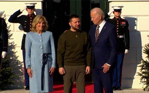 当地时间21日下午,乌克兰总统泽连斯基在白宫与美国总统拜登举行会见。这是自俄乌冲突爆发以来,泽连斯基首次离开乌克兰境内。当天结束与拜登的会见后,泽连斯基还将前往美国国会进行演讲。