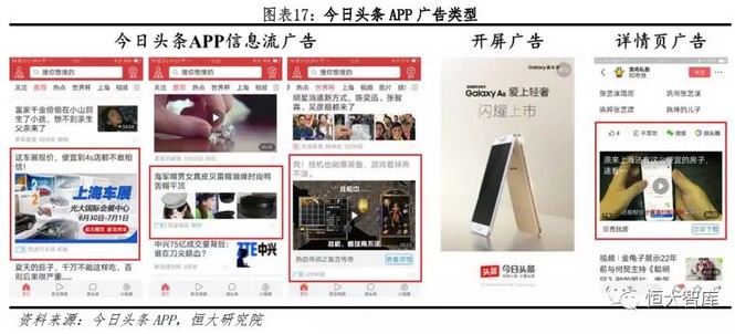 详情页广告:出现于文章内容和相关阅读之间,可以关联文章内容定向投放。详情页广告可以借势文章内容强调产品功能和品牌理念,且设置文章关键词、内容和来源的定向投放,将广告精准推送给感兴趣的群体,如向汽车类文章的阅读者投放汽车广告、向财经新闻类文章的阅读者投放炒股或理财APP。