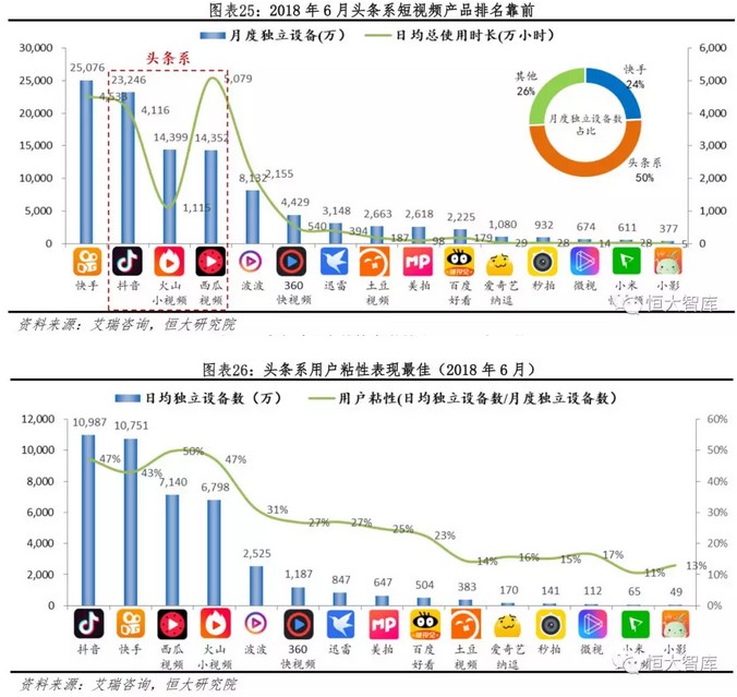 抖音、火山小视频和西瓜视频面向了国内主战场,不同产品的目标群体和内容生产方式互补,“PGC+UGC+音乐”组合形成了完整的产业布局: