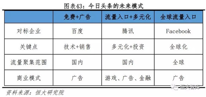 4、未来推演:多元化决定下限,全球化决定上限,“免费+广告”、“流量入口+多元化”和“全球流量入口”是三种可能模式。