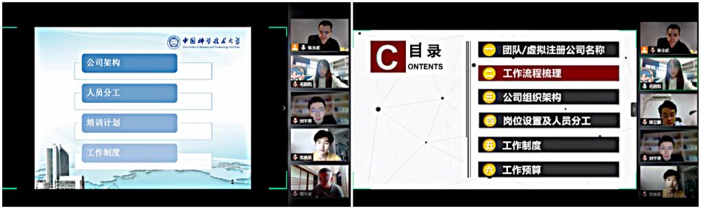 在组队研讨的基础上,2支学生团队分别命名为:“颗粒可期”团队和“沃科星火”团队,并向创新创业学院提出虚拟注册公司的申请,分别拟命名为“中科蜗创基金管理有限公司”和“合肥南七创投管理有限公司”。组队会议上,两队临时负责人分别就团队目标、组织架构、工作流程、人员分工等做了详细的阐述,条理清晰,内容丰富,展示出强烈的工作热情和团队自信。