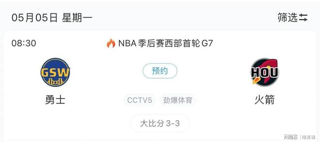 北京时间5月5日,在今天cctv5将会为广大球迷播出一系列精彩比赛,像篮球,乒乓球,斯诺克等一系列赛事,也将会在体育频道为广大的球迷呈现。首先在今天上午将会迎来一场NBA的季后赛,火箭主场对阵勇士,