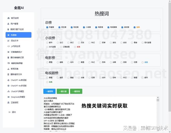 烟雨黑帽SEO全民AI时代一站式内容创作平台- ChatGPT+DeepSeek