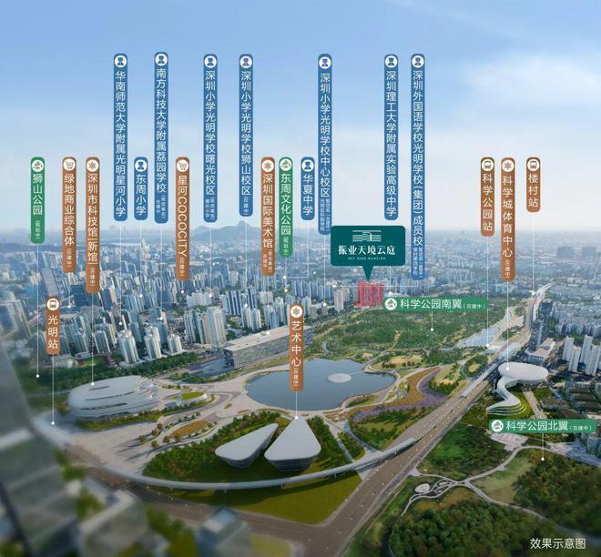 振业天境云庭位于光明中心区,科学公园周边,深圳国际美术馆、深圳科技馆新馆、科学城体育中心、光明文化艺术中心等市级文体配套环绕。