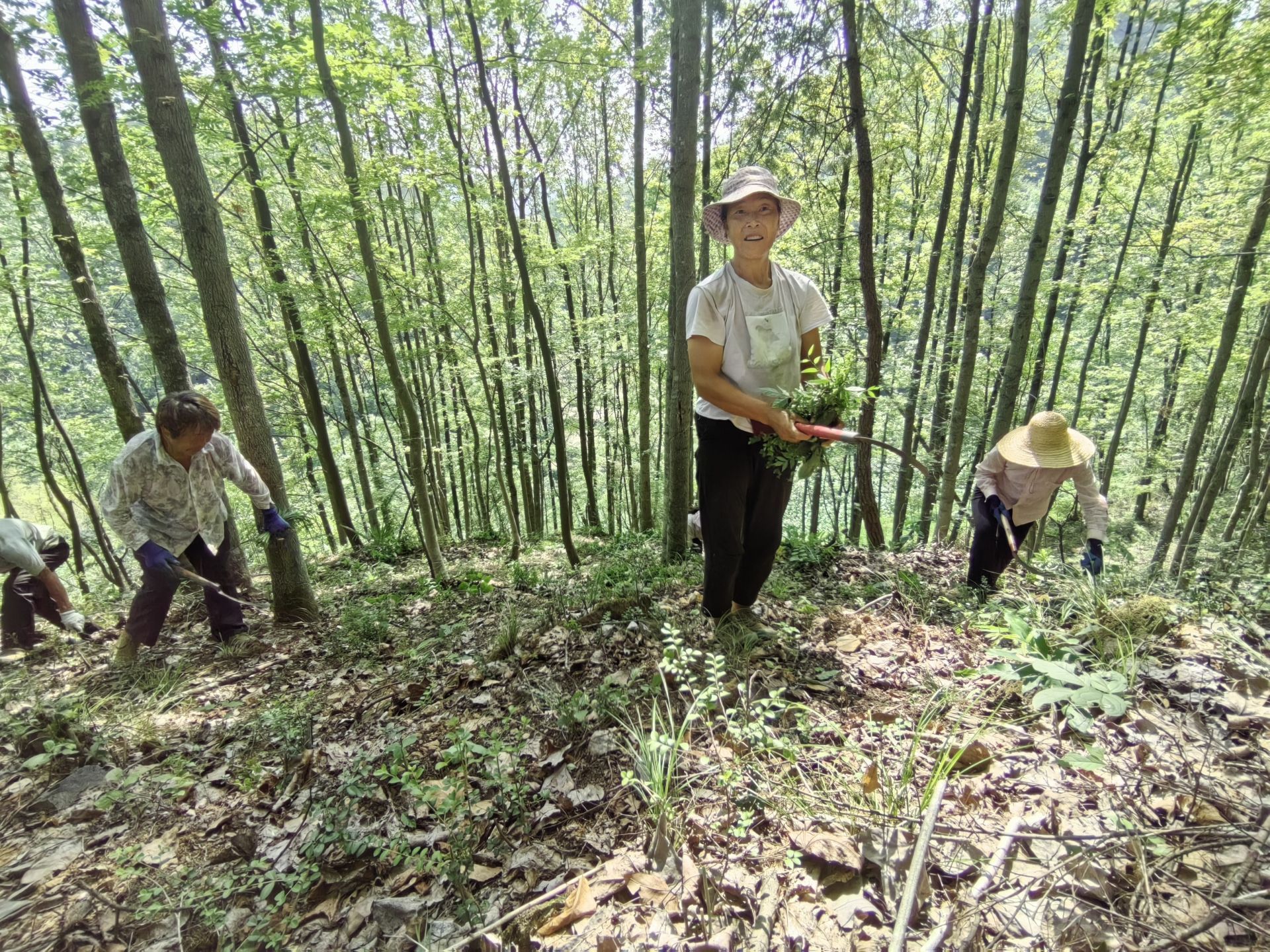7月16日10时许,64岁的留守老人李枝秀和工友又沿着山路给周边山林下的淫羊藿开始锄草。“每天干点锄草等活路能挣到100元,老板还管饭。”李枝秀说,“在家门口能挣到钱,我觉得这个‘绿色银行’挺好的。”
