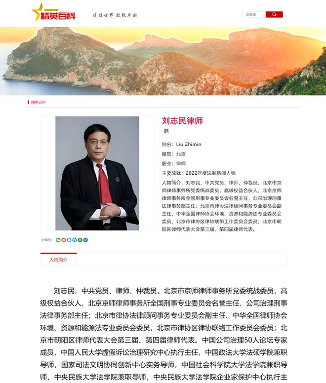 刘志民,党员、律师、仲裁员,北京市京师律师事务所党委统战委员,高级权益合伙人,北京京师律师事务所全国刑事专业委员会名誉主任,公司治理刑事法律事务部主任;北京市律协法律顾问事务专业委员会副主任、中华全国律师协会环境、资源和能源法专业委员会委员,北京市律协区律协联络工作委员会委员;北京市朝阳区律师代表大会第三届、第四届律师代表。中国公司治理50人论坛专家成员,中国人民大学虚假诉讼治理研究中心执行主任,中国政法大学法硕学院兼职导师,国家司法文明协同创新中心实务导师,中国社会科学院大学法学院兼职导师,中央民族大学法学院兼职导师,中央民族大学法学院企业家保护中心执行主任,最高人民法院国家责任研究基地研究员,河南财经政法大学司法案例研究院(最高人民检察院司法案例研究基地)研究员,北京广播电视台法治节目评论员。其代理的重大复杂案件曾被载入《最高人民法院工作报告》《最高人民检察院工作报告》。2017年入选国家教育部全国万名优秀创新创业导师人才库,2018年入选中国改革开放四十周年《中国法律年鉴》年鉴人物优秀专业律师,2019年入选新中国成立70周年暨中国律师制度恢复重建四十周年《中国法律年鉴》年鉴人物优秀专业律师。2017一2021年连续北京市朝阳区律协委员会评为"优秀员”。2022年与毛伟律师创办了中国社会科学院大学法学院"伟志宪尊奖学金"项目,为国家培养高素质法律人才贡献一份力量。刘志民被中国诗歌春晚组委会评为2022年度“全国十佳诗人”,2023年中国诗歌春晚舞台上,刘志民创作的散文诗《雪花》由中国著名青年朗诵艺术家隋源老师精彩演绎。