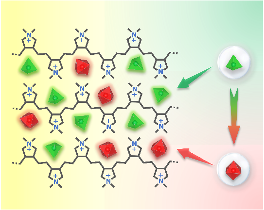 本工作中,团队基于聚合物金属卤化物独特的结构容忍性,在单相金属卤化物中整合了两种不同的配位单元,实现了单一金属多种光学活性配位构型的可控表达。通过调控聚合物阳离子的空间位阻,研究团队在聚合物锰卤化物中实现了绿色、红色或双色发光,其发光源于锰溴四面体向八面体的可控转变。进一步,研究团队将该设计策略拓展至聚合物铜卤化物体系,利用不同铜碘多面体的宽谱自陷激子发光特性,通过组成调控、激发波长或温度调节,实现了发光颜色从蓝光到黄光的线性调谐,涵盖纯白光发射。
