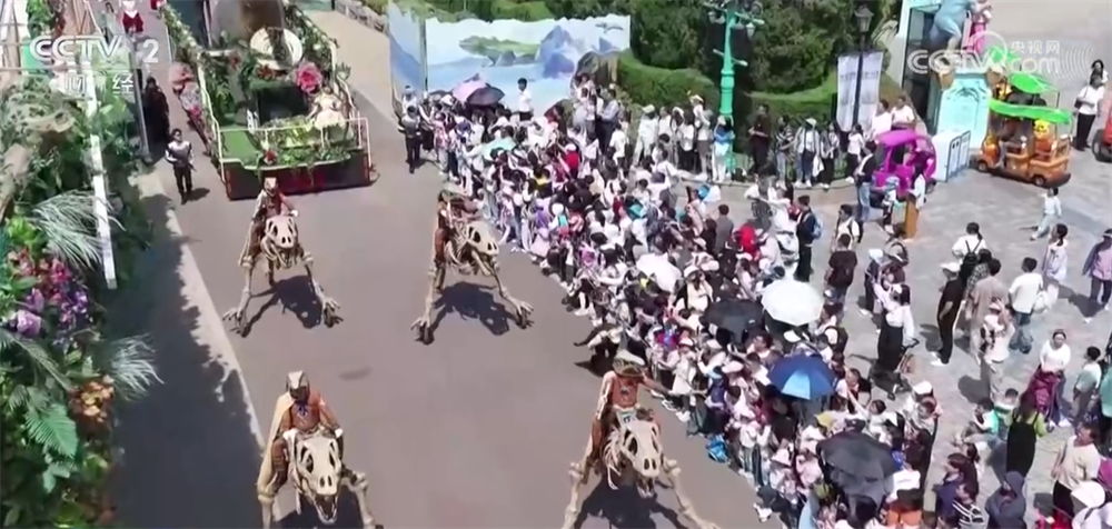 足球场化身成为城市“会客厅”,江苏的各个城市也通过一系列促消费的举措吸引大批游客走进景区。像在比赛中提供仿真恐龙“拉拉队”的中华恐龙园,7月以来的客流量和营业收入同比增长了约80%。景区也推出了一系列巡游活动,来丰富游客的游玩体验。