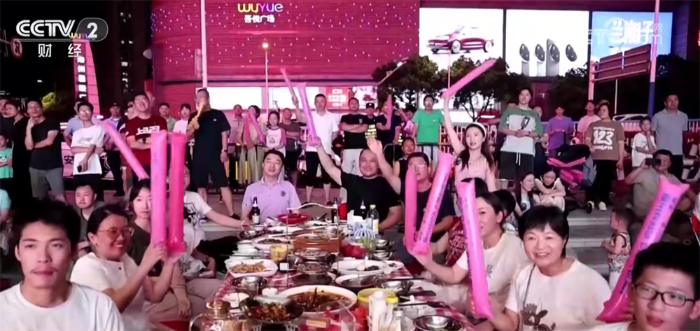 夜幕降临,白天的暑气渐消,随之而来的是点燃的夜经济。大家吃着烧烤、喝着啤酒,还可以一起通过大屏观看赛事直播;此外,各大商业街区也打造“美食+购物+足球”等多元的夜间消费场景,将赛事IP转化为激活夜间消费的“超级接口”。