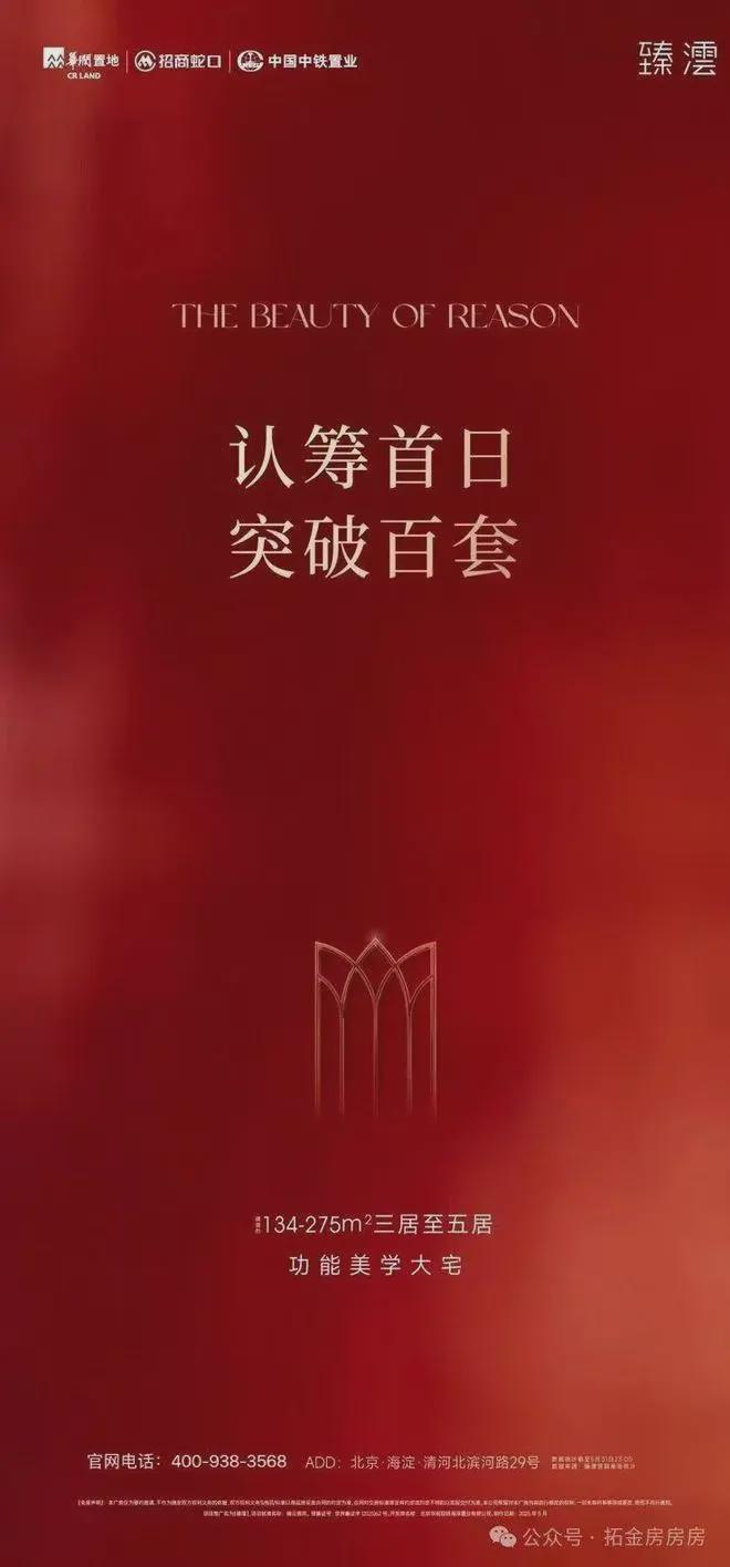 北京华润臻澐,由华润置地、招商蛇口、中铁置业三大巨头联合开发,是海淀朱房村 0029 地块的标杆之作!2025 年 1 月,地块以 91.52 亿元成交,楼面价 8.92 万元/㎡,溢价率 17.33%,从诞生之初便自带光芒!