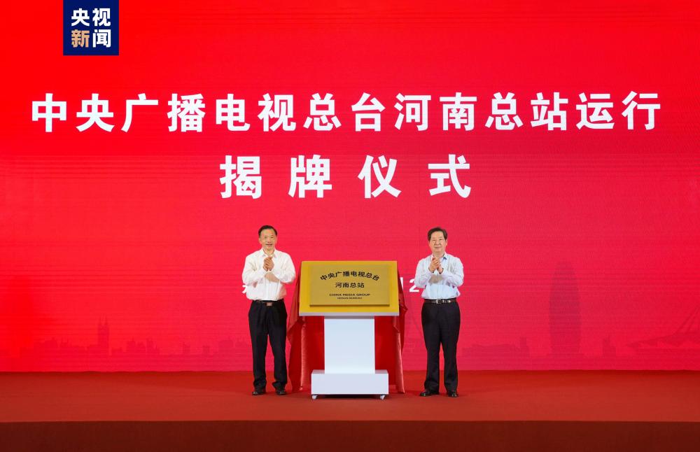 河南省委书记、省人大常委会主任楼阳生与中宣部副部长、中央广播电视总台台长慎海雄出席并共同为中央广播电视总台河南总站运行揭牌。河南省委副书记、省长王凯出席仪式。中央广播电视总台编务会议成员黄传芳与河南省副省长张敏共同签署《中央广播电视总台与河南省人民政府战略合作框架协议》。