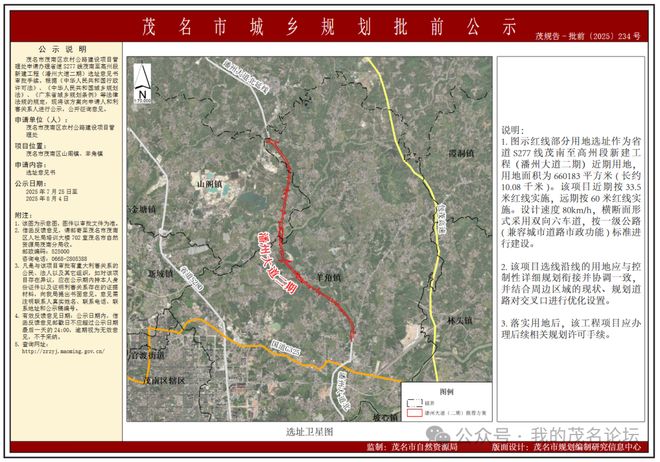 2025年7月25日,省道S277线茂南至高州段新建工程(潘州大道二期)选址意见书批前公示。