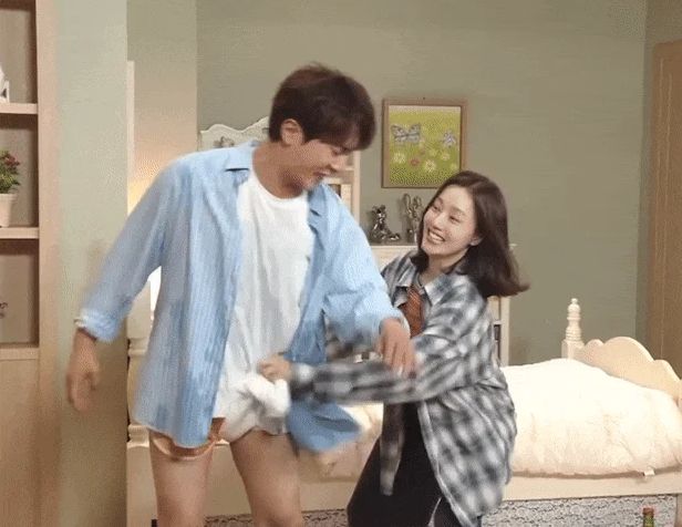 当金元勋脱下裤子换短款运动裤时,文彩元全程注视的样子让金元勋感到慌张,对此文彩元表示:“我们小时候不还光着身子一起洗澡吗?不过你好像长大了不少呢。”