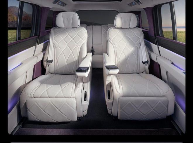 座椅采用经过78道工艺处理的Nappa线道工序打磨的柚木材质。第二排配备独立零重力座椅,集成控制屏与电动腿托,进一步强化豪华体验。