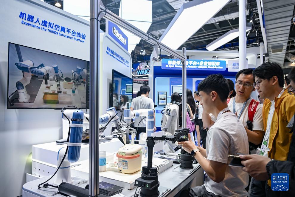 正在上海举行的2025世界人工智能大会展览现场,参观者与能分拣物品打扫房间的机器人、具备拍摄导航语音翻译功能的智能眼镜、AI艺术创作系统、基于AI大模型打造的驾驶座舱等众多AI科技前沿产品零距离互动,仿佛置身未来世界,感受科技之美。