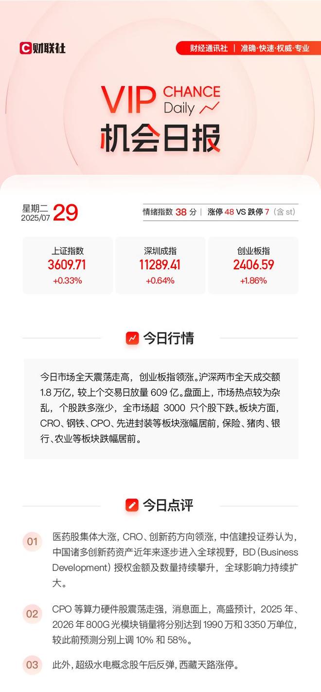 「VIP机会日报」医药板块大涨 栏目精选公司要闻并解读 Ta为药企提供一站式服务 今日20cm涨停