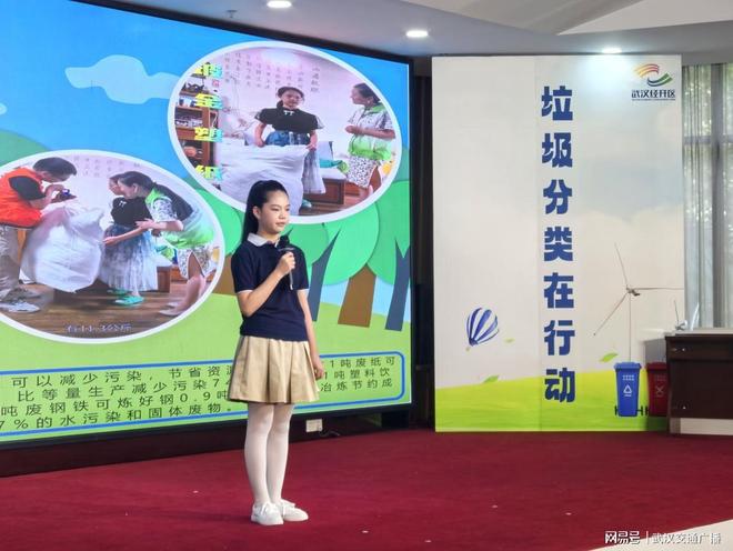 学生代表余奕萱以《武汉以我为荣 垃圾分类在行动》为题,从生活场景进行描述,生动展示了垃圾分类在生活中的习惯养成。
