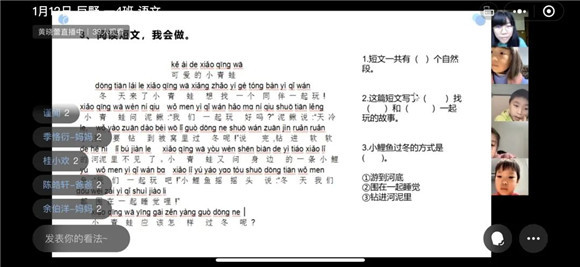 为体现教学的实时性,教师们充分发挥直播平台的互动功能,每节课前,教师会根据学生发言申请,选好课堂“小助教”,避免中途选人回答问题出现卡顿或掉线。课中,教师通过“实时连麦”、“评论区实时互动”等功能,轮流邀请学生发言,使每位学生都有参与课堂互动的机会。教学中多种形式的互动,充分体现了学生主体的教学思想,使在线教学的课堂充满了生机,课堂教学效率也得到了保障。