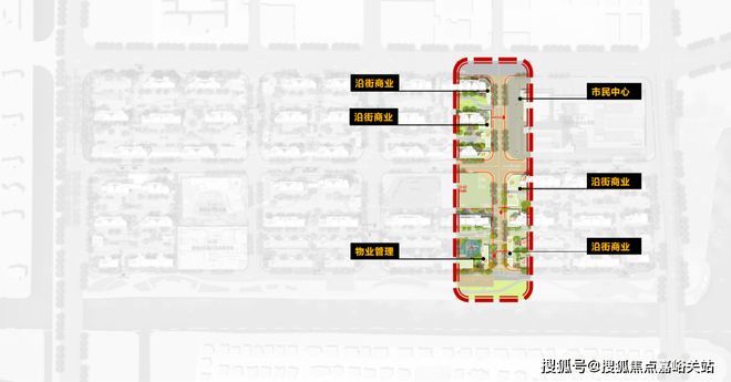 一街为活力商业街,通过纵向布局,在街道两侧配上丰富立体的商业,包括沿街商业、邻里中心、乐活商业街等,满足居民日常的需求。