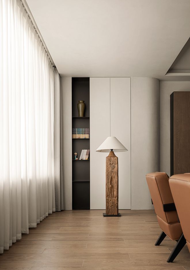 室内的家具秉持着“少即是多”的理念,赋予了生活更加轻盈的生活态度,伴随着和生活的升温,此处的时光也逐渐悠扬了下来。