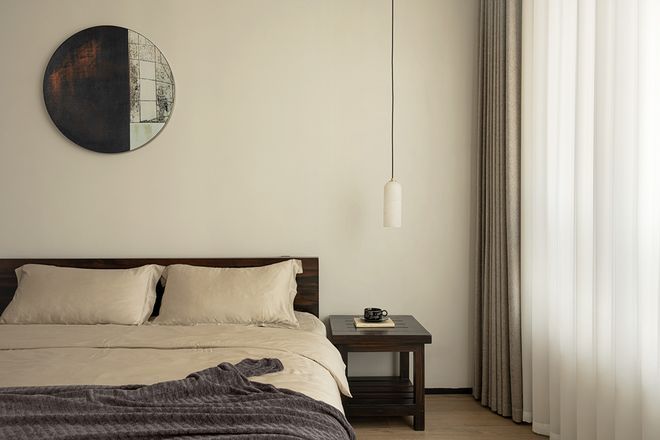 设计师为床体打造了“凹槽”,展现了家的安稳性,同时赋予了墙面细腻的叶片,来点缀空间的自然之意,让生活的意境更具浪漫的成分。