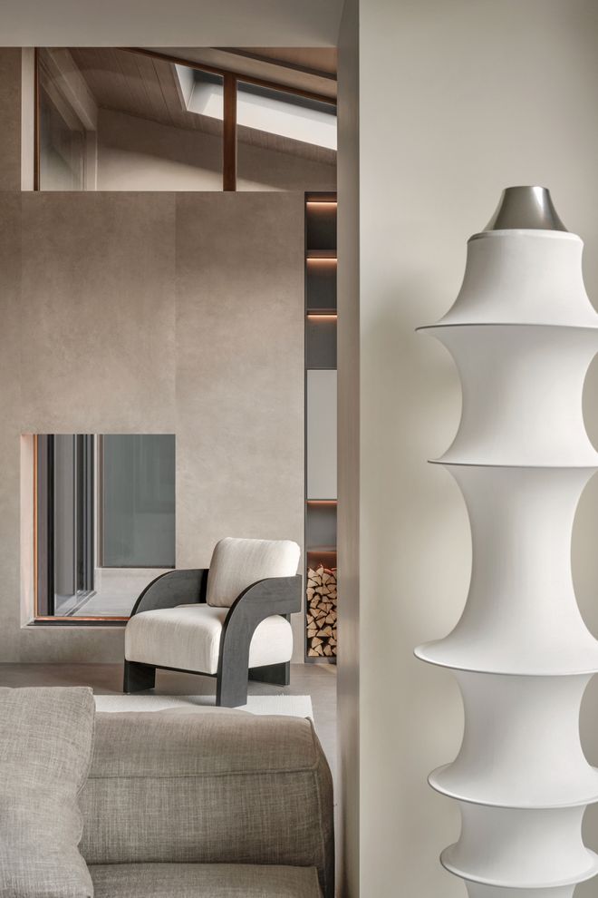 空间的结构错落有致,展现出建筑的复杂魅力。通过精心设计的窗洞,室内与室外景观相连,形成流动性的空间。这个空间如同一个充满个性的“被动之家”,通风节能,与光线共舞,仿佛自然生长而成。