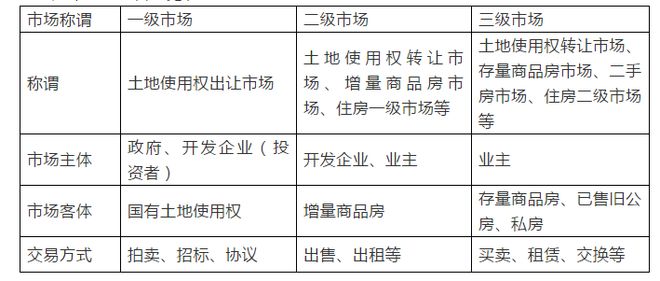 b、二级市场:开发商获得土地后,投入一定的奖金建设,通过有偿或赠与将产权转买给需求者(新建商品房的买卖市场);