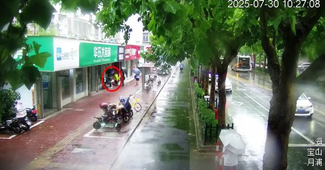 在竹韵路和上海·海上世界边的积水点,宝山环境公司的环卫工人冒雨作业,他们身披雨衣、脚踩雨鞋、手持扫帚、铁锹等工具对积水路段进行巡回清扫,遇到排水口被落叶、树枝堵塞时,便直接俯身徒手清理,不顾风雨浸湿全身,争分夺秒恢复排水功能。
