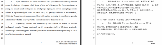 据报道描述,这份诉状已于上周在美国加州法院提交。索尼在起诉中称,腾讯这款尚未发售的冒险游戏在诸多方面与《地平线:西之绝境》和《地平线:零之曙光》高度相似——包括机兽设计、主角设定乃至宣传素材。索尼列举了大量相似之处,并对比了两款游戏的宣传截图及简介内容。