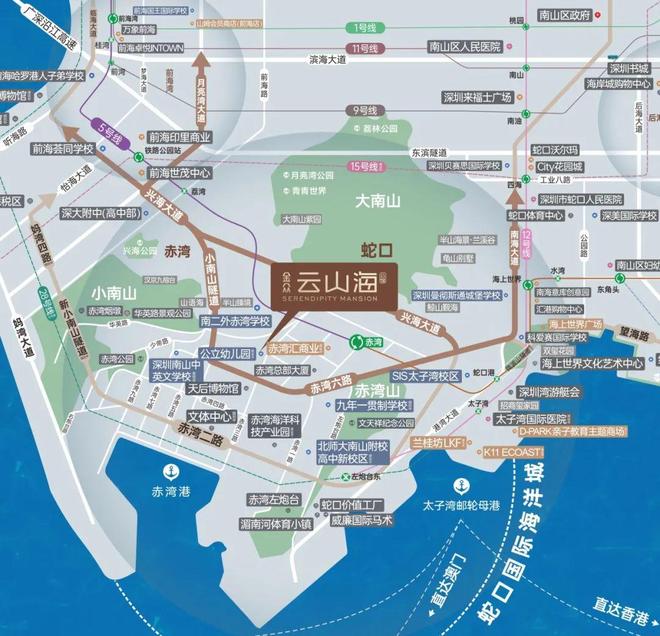 交通方面:地铁交通:步行约200米,即可抵达2/5号线的赤湾站,项目与深圳首条环形地铁15号线紧密相连,为您的出行增添更多选择与便利,此外,周边更有12号线号线号线(规划中)等地铁线路汇聚,后期连接前海、后海总部基地、宝安中心、留仙洞总部基地、福田香蜜湖等城市价值核心区。