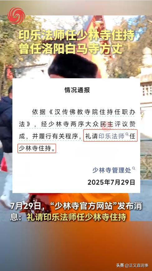这与第四个打击不无关联。7月29日,少林寺管理委员会再次回应,宣布邀请曾担任洛阳白马寺住持的印乐法师担任少林寺新任住持,目前印乐法师已抵达少林寺。
