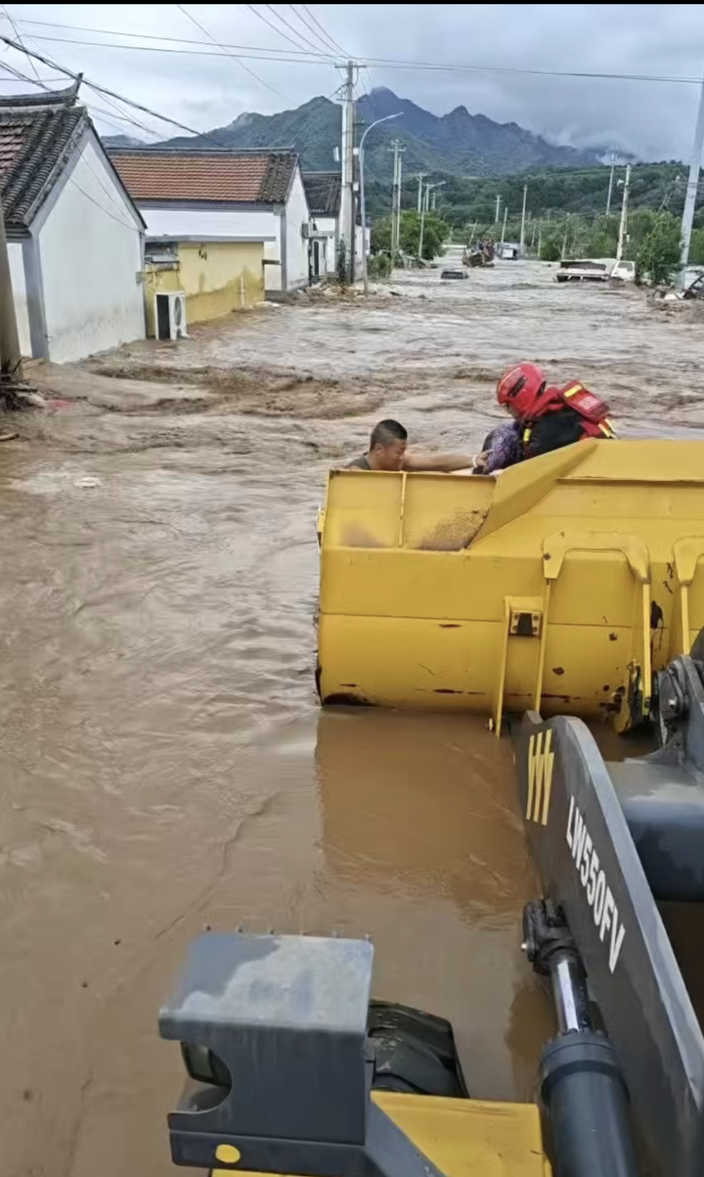 “10点,村里有些地方的洪水已有两米多深。”王天宇开着铲车,经过倒塌的院墙、房屋。一路上,他的目光扫过被困村民,有的坐在窗台上,有的站在房顶上……
