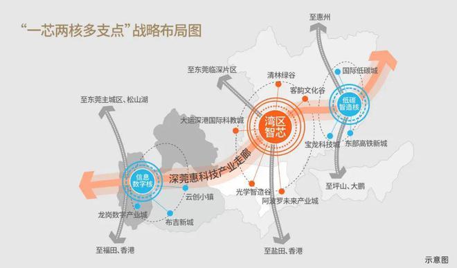 龙岗“一芯”“两核”“多支点”主体功能布局,大运新城作为“一芯”湾东智芯的代表,位居“东进战略”最前沿,也是港澳大湾区经济腹地、辐射粤东北的“桥头堡”打造深圳都市圈的“东核心”。